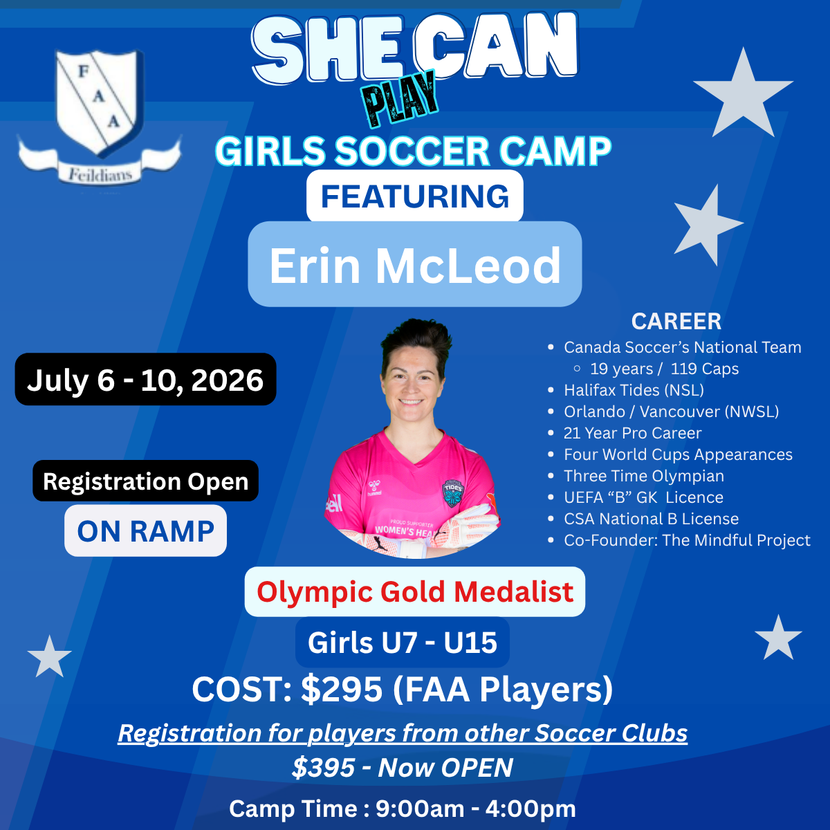 She CAN Play Girls Soccer Camp Featuring ERIN MCLEOD - Now Open to the Public