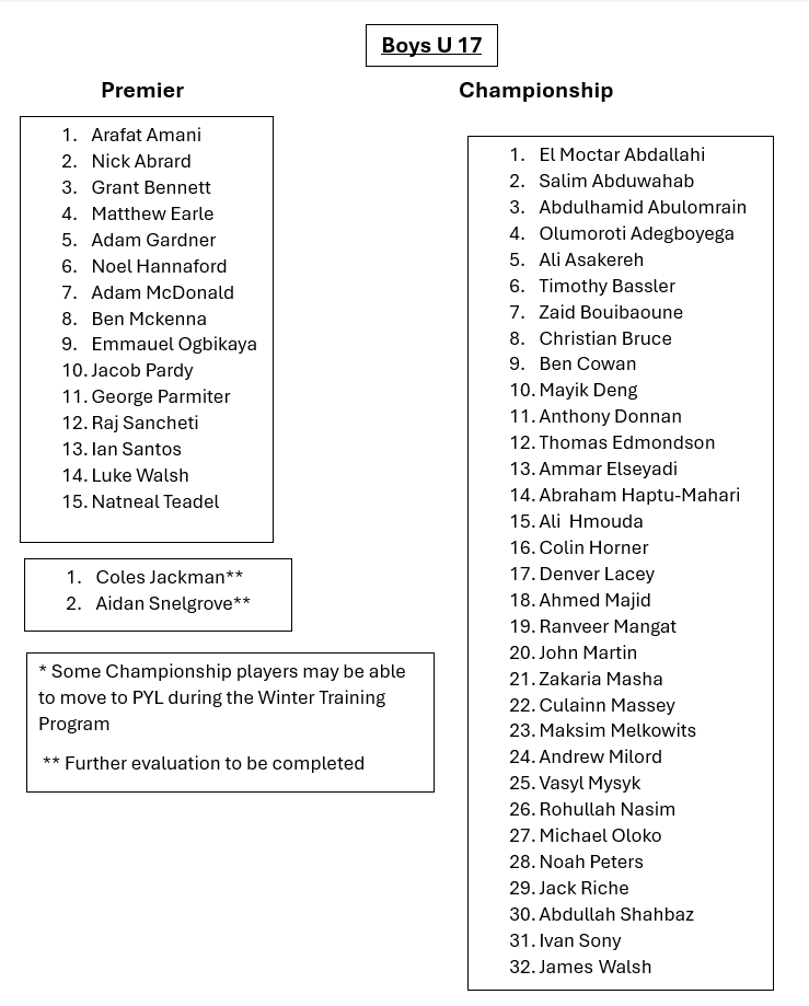 Championship League teams are rep teams that complete in a province-wide league with U15 & U17 age divisions. This league is a developmental league for the Premier League and players can be called up to the FAA Premier League team in case of injury or a shortage of players for that particular game.