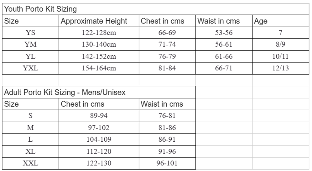• Please review the Sizing Chart Below before registering to ensure the proper sizing is correct