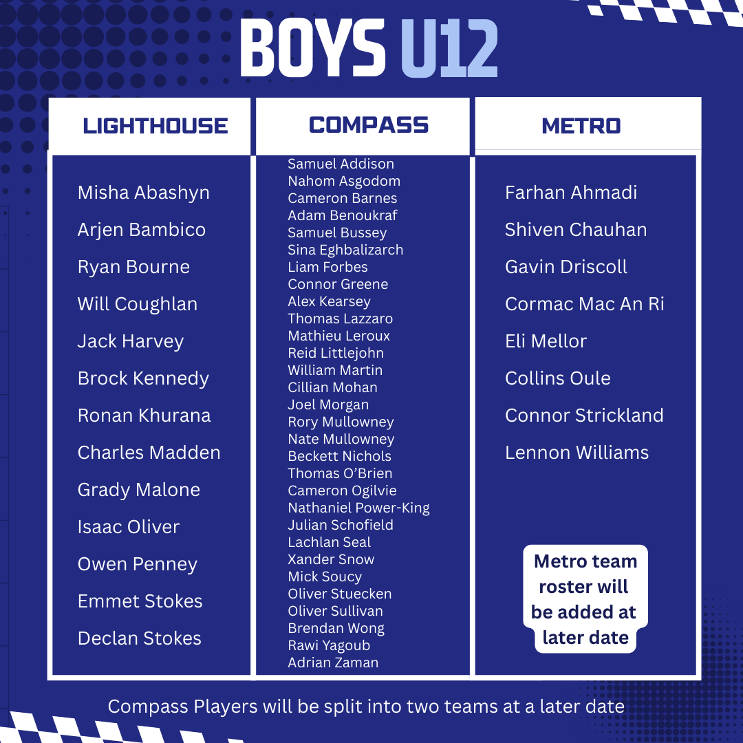 2026 Under 12 & Under 13 Lighthouse / Compass / Metro Teams